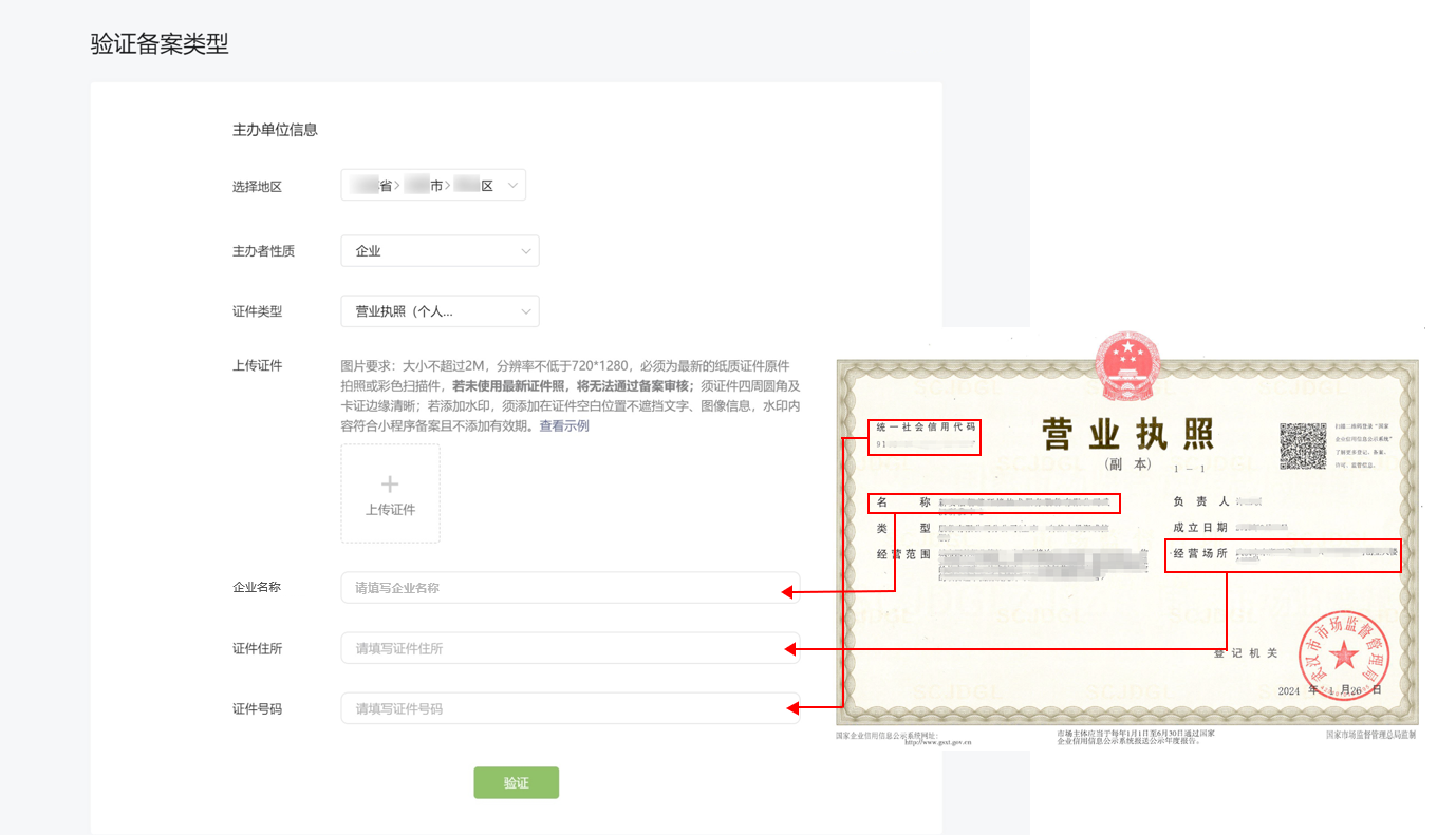 注:若為新建企業(yè)或近期有做信息變更,可能會存在企業(yè)工商數(shù)據(jù)更新延遲的情況,建議過段時間(5~15個工作日)再進行重試,否則無法正常發(fā)起驗證流程。