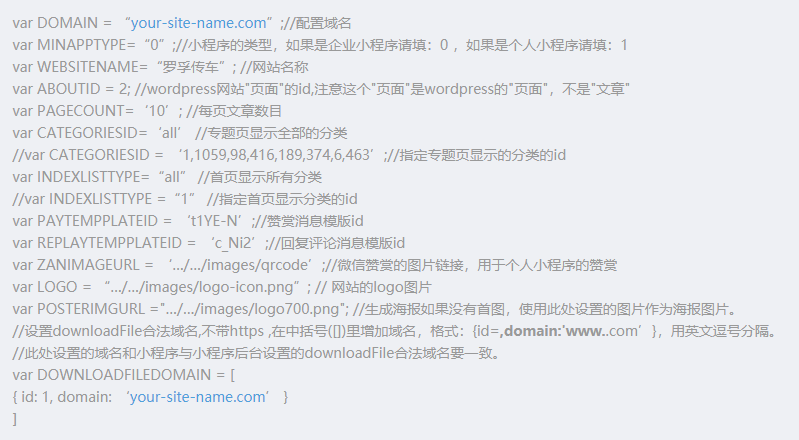 個人可以申請微信小程序,但是需要花300元認證才可以開通微信支付功能。申請完成,填寫小程序的相關(guān)信息,名稱、頭像等,接下來在開發(fā)設(shè)置中設(shè)置服務(wù)器域名。域名默認HTTPS開頭,不支持HTTP。配置完域名,回到WordPress中配置插件,進入設(shè)置中的“微信小程序設(shè)置”。AppID和AppSecret都可以在微信的開發(fā)設(shè)置中獲得。