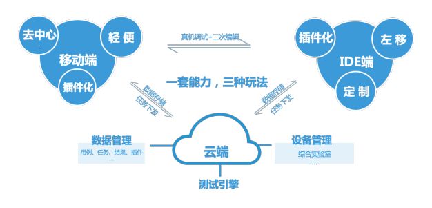 在保留了上述“云測”的玩法之外,移動測試 2.0+ 時代下的測試技術(shù)提供的往往不再是某一個獨立的小工具,更多的是帶來一套完整的解決方案,例如為用戶提供一套定制化的 IDE 環(huán)境,結(jié)合錄制回放、圖像識別等技術(shù),用戶可能只需要做一些簡單的框選、拖拽就能完成測試腳本的開發(fā)。另一方面,由于辦公環(huán)境、硬件條件等因素的限制,越來越多的測試人員希望可以在移動端上直接發(fā)起測試,做到移動測試“移動測”。當(dāng)然,無論是云端、IDE 端、還是移動端,都應(yīng)該做到能力互通,即“多端多通”,這樣才能讓測試方案更加靈活、適用于更多場景。