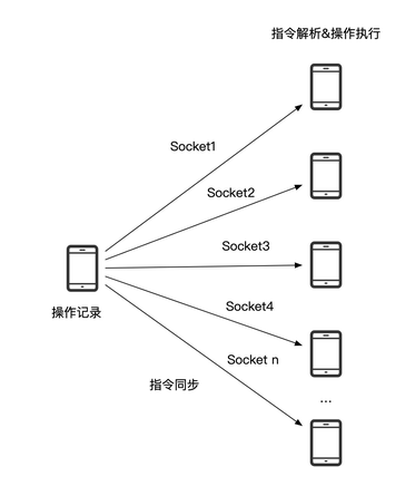 Soloπ 在錄制回放能力的基礎(chǔ)上實現(xiàn)了一套兼容性測試的解決方案。在錄制回放的場景中,我們先是在一臺設(shè)備上記錄了用戶的操作,然后再在任意一臺設(shè)備上實現(xiàn)操作的回放。如果把場景擴展到多臺設(shè)備上,就可以實現(xiàn)通過一臺設(shè)備操控多臺設(shè)備,我們把這套功能稱為“一機多控”。具體說來就是主機與從機建立 Socket 連接,然后在主機上將用戶的操作實時發(fā)送到各個從機,在從機上完成操作的回放。