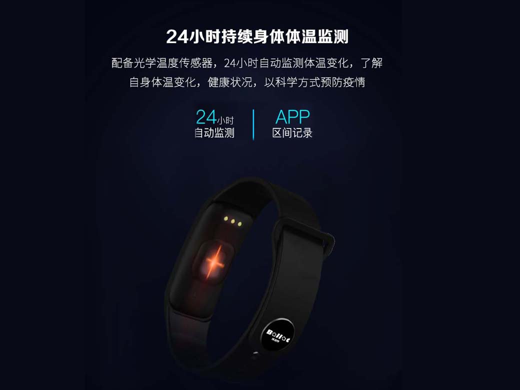 新冠病毒,來勢洶洶 隔離人群,數(shù)以十萬計(jì),復(fù)工復(fù)學(xué)在即,急需科學(xué)的方法管理為了幫助對人群逬行安全、智能的監(jiān)測和預(yù)警,特別是對學(xué)生密集人群管理監(jiān)測, 特別推出了專門計(jì)對體溫監(jiān)測的產(chǎn)品——智能手環(huán).產(chǎn)品可以在疫情期間可以做 到24小時智能體溫,自動實(shí)時監(jiān)測社區(qū)隔離人員或企業(yè)復(fù)工學(xué)校復(fù)學(xué)人員體溫,有效減少接觸,降低交叉?zhèn)魅?.智能手環(huán)不僅能夠?qū)崟r自動 監(jiān)測隔離者體溫,同時具備高溫自動預(yù)警功能,并配備統(tǒng)一管理后臺.讓監(jiān)護(hù)管理人員遠(yuǎn)程也能有效掌提體溫動態(tài). 實(shí)時響應(yīng),這些特性大大提高了基層管理人員的監(jiān)管效率,并且能夠有效減少接觸,降低交叉?zhèn)魅?,在疫情期間可為社區(qū)、企業(yè),學(xué)校和個人的抗疫工作發(fā) 揮重要作用